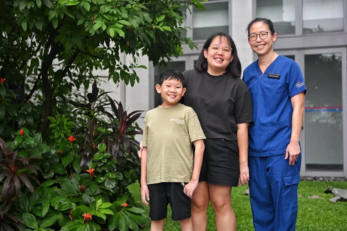 (From left) Kayden Soh with his mother, Ms Yong Xiao Ping, and Dr Mildrid Yeo.