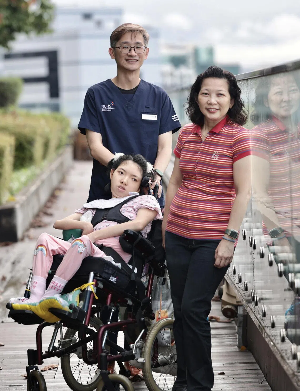 Cerebral palsy patient Hillary Chua with her mother, Ms Cindy Wong, and Dr Tay Chong Meng, division head of advanced general dental practice at the National University Centre for Oral Health Singapore.