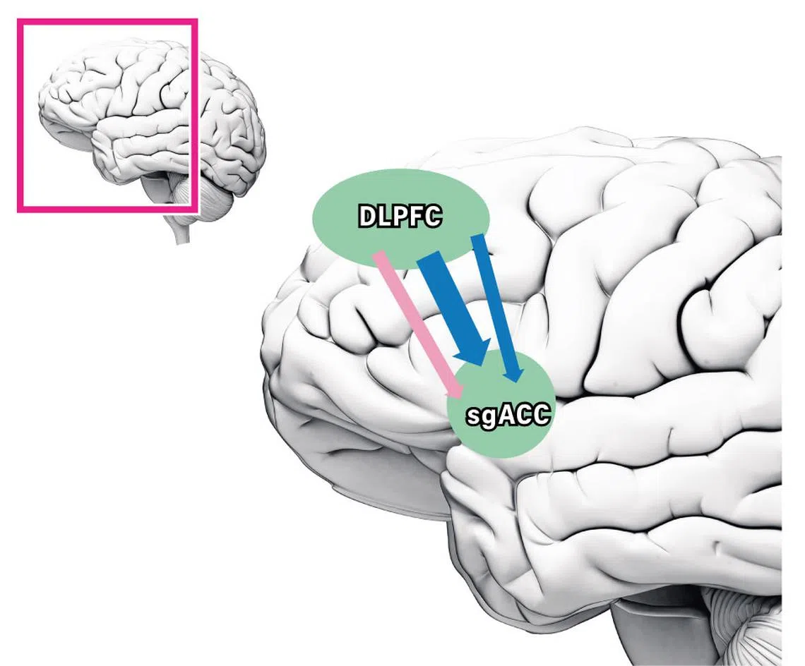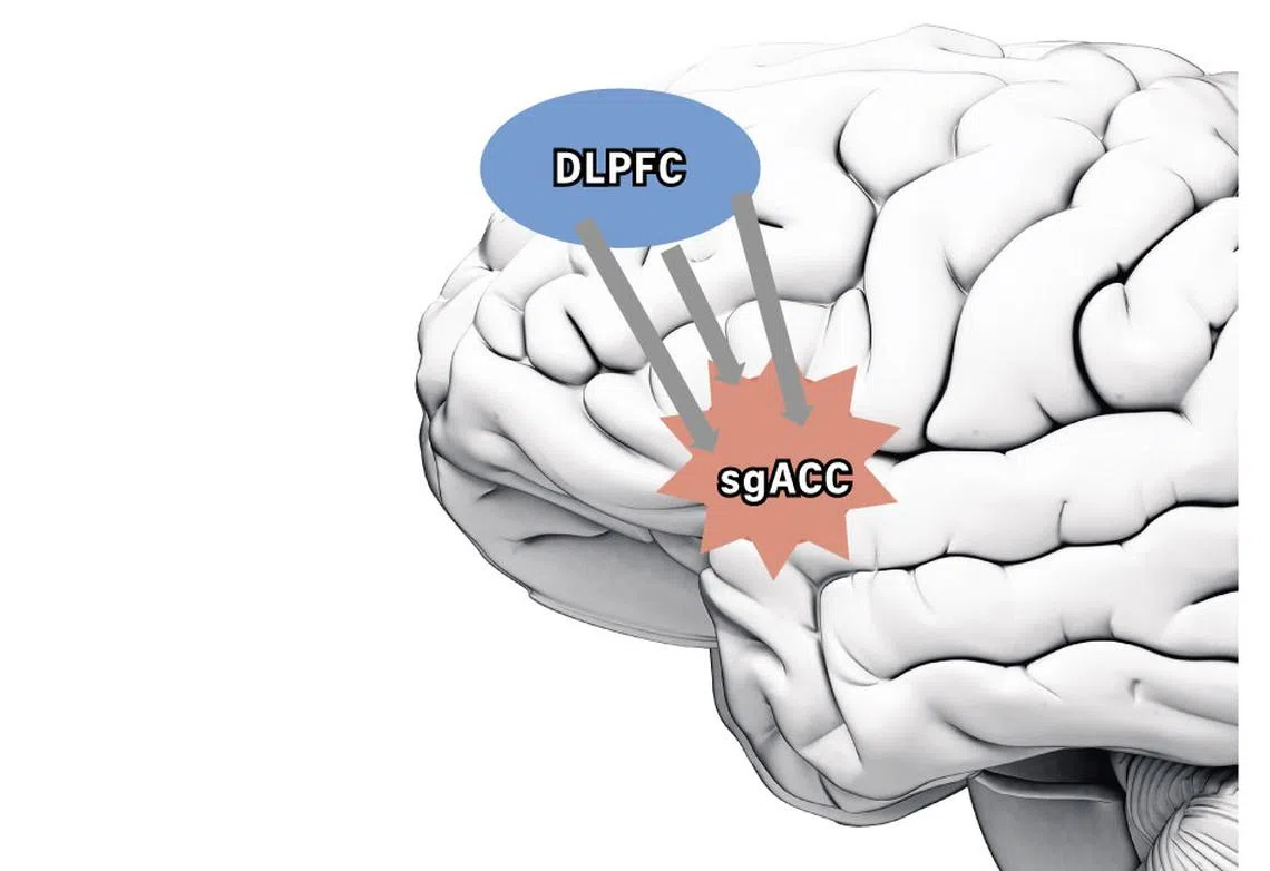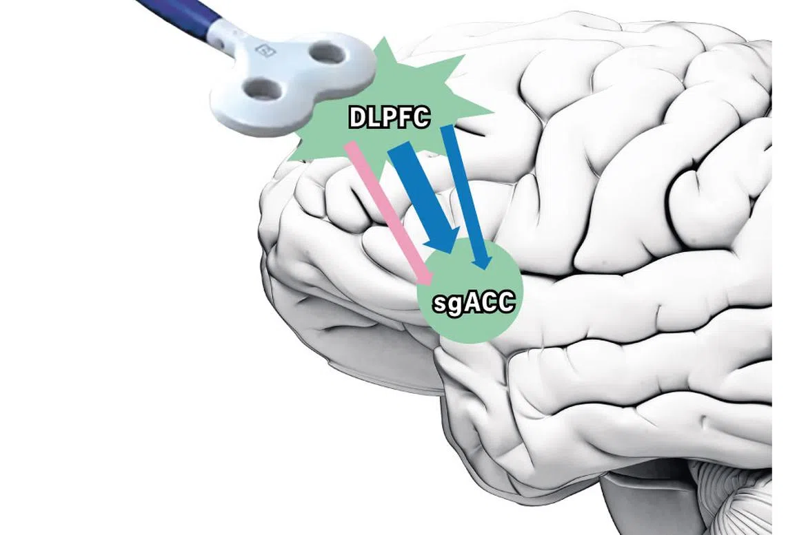 In Transcranial Magnetic Stimulation (TMS), which is already offered in Singapore, doctors stimulate a spot that is connected to a deep part of the brain that has been consistently implicated in depression.