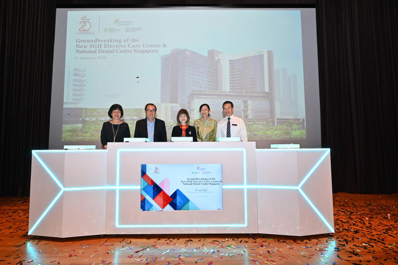 (From left) National Dental Centre Singapore Director, Clinical Assoc Prof Poon Choy Yoke, SingHealth chairman Peter Seah, Senior Minister of State for Health Amy Khor, SingHealth group CEO Ivy Ng, Singapore General Hospital CEO Kenneth Kwek at the groundbreaking ceremony of the new SGH Elective Care Centre and National Dental Centre Singapore Building on Jan 21, 2020.