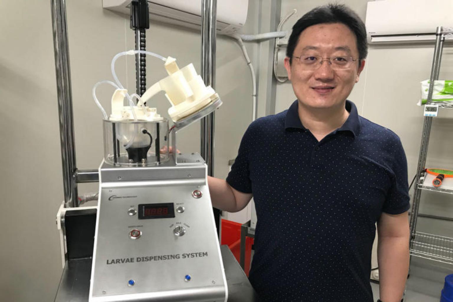 Orinno Technology co-founder, Dr David Du, with the larvae counter, which has been helping with the rearing of male Wolbachia-Aedes mosquitoes.