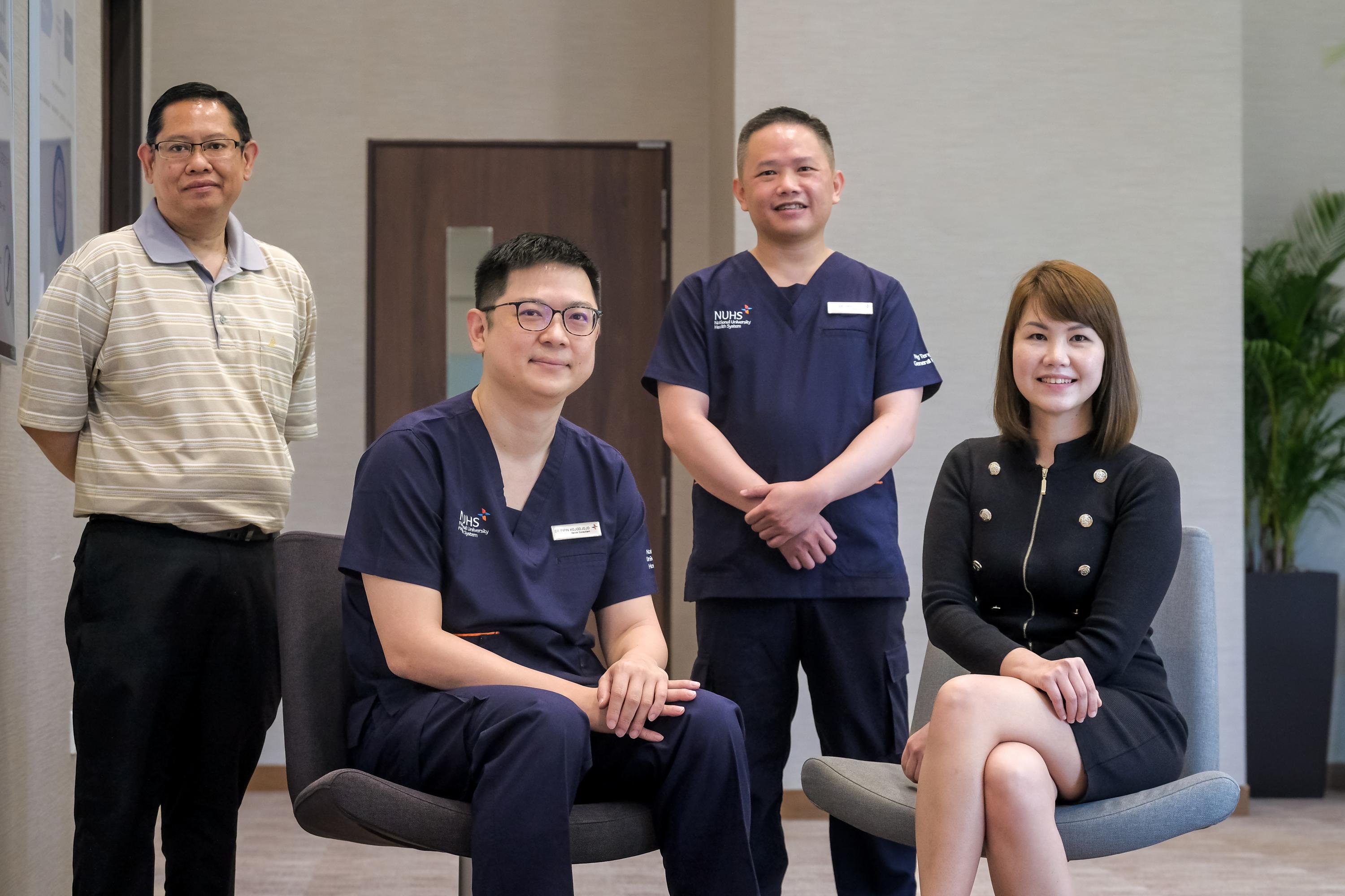 (From left) Mr Mohamed Roslan bin Dawood, Ng Teng Fong General Hospital’s Director of Cardiology Pipin Kojodjojo, Cardiology and ICU Consultant Jimmy Ong and Ms Michelle Yip.