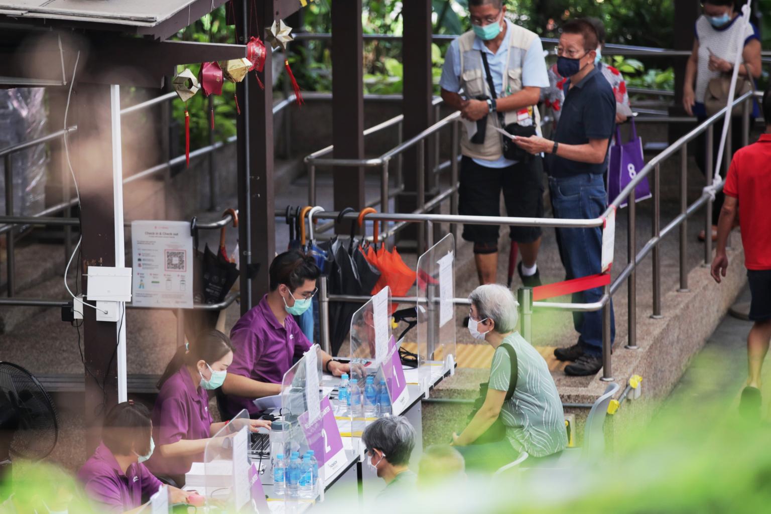 Seniors registering for their booster shots at Bishan Vaccination Centre on Oct 1.