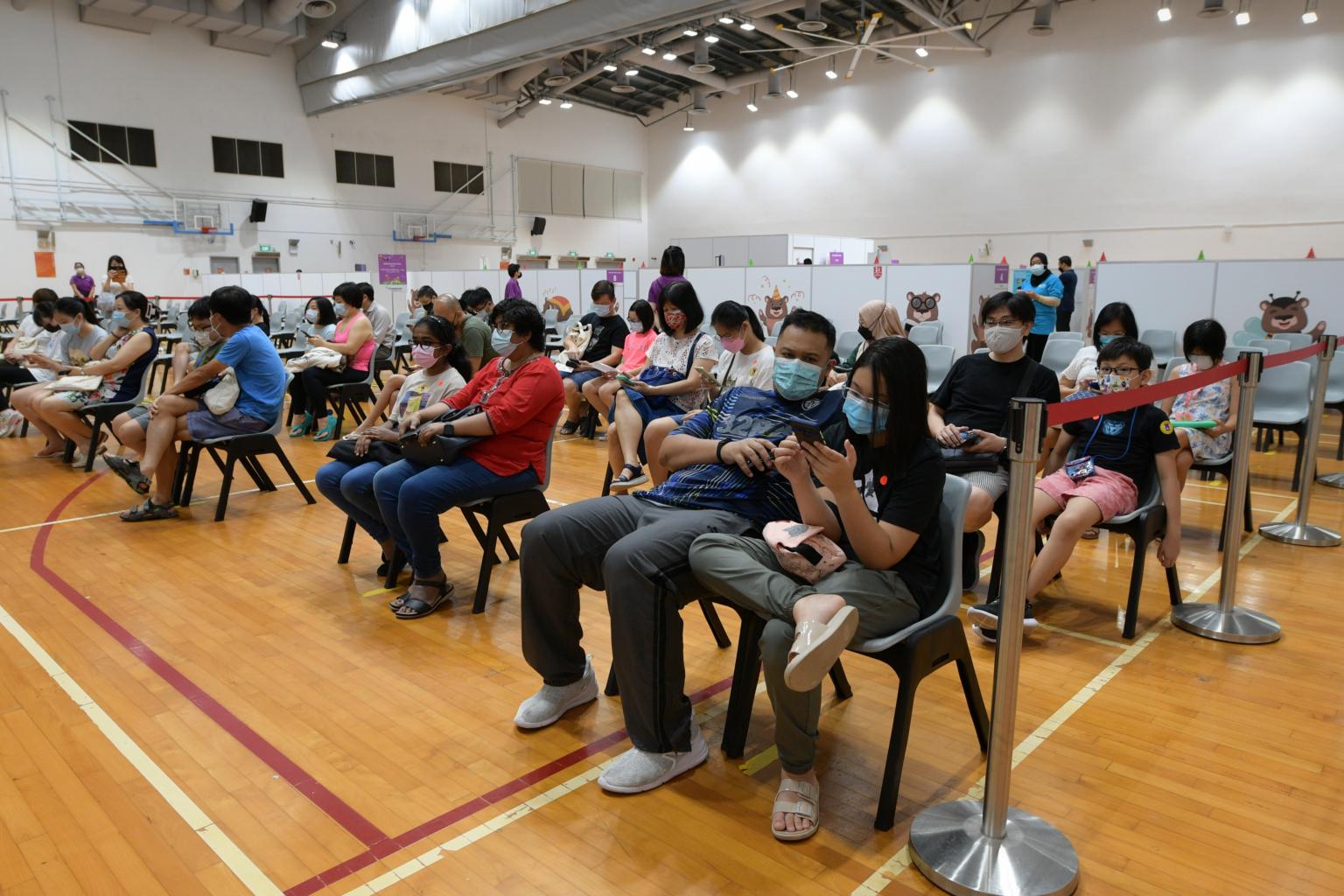 Children waiting with their parents in the observation area of Senja-Cashew Community Club after getting their Covid-19 vaccine shots on Dec 27, 2021.