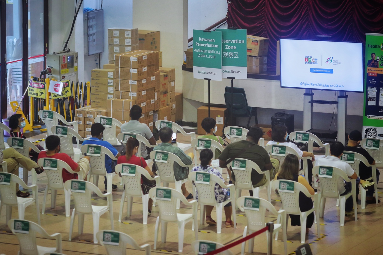 People waiting in the observation area after getting their Covid-19 shots at Tanjong Pagar Community Club on Oct 12, 2021.