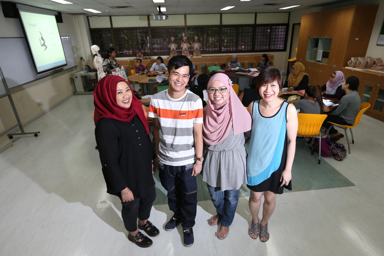 Enrolled nurses (from left) Nur Rimma Mohd Ali, Ang Eng Ann, Sa'adiah Ramlee and Doreen Cheok are now studying to bridge the gap and become registered nurses.