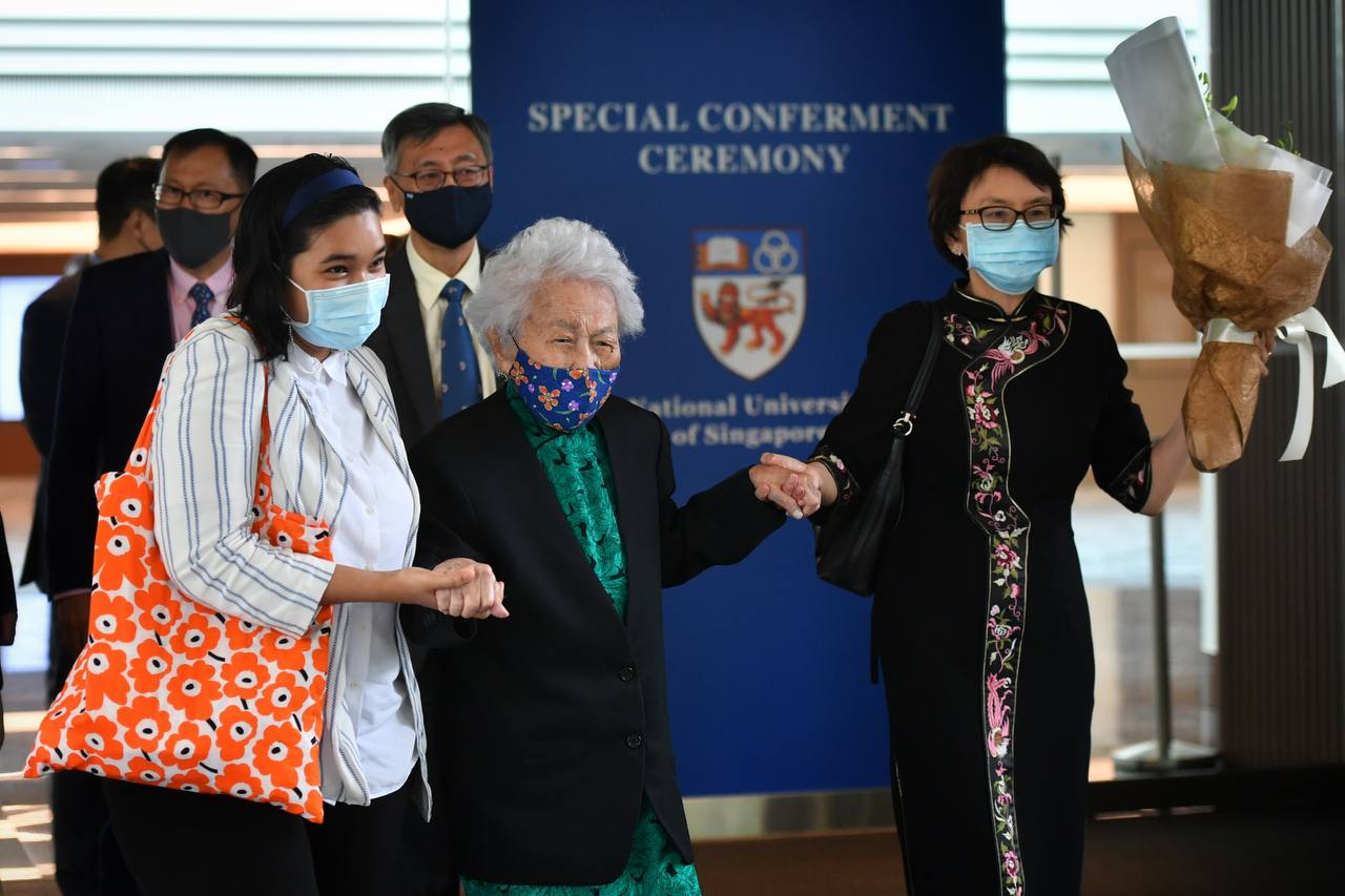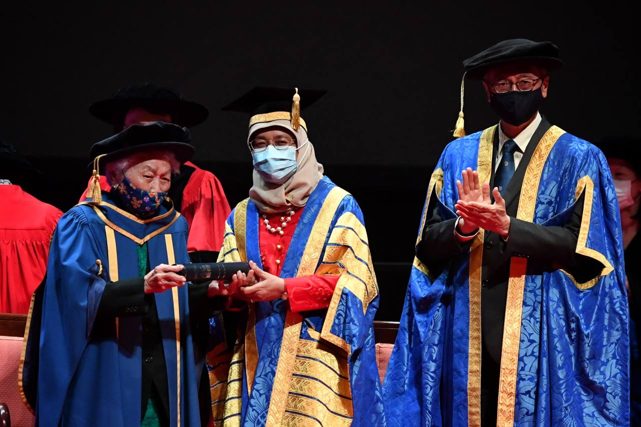 On Tuesday (Jan 12), the 104-year-old was presented with an honorary Doctor of Letters degree by President Halimah Yacob, who is also the NUS Chancellor, at a ceremony held at the University Cultural Centre at NUS Kent Ridge Campus.