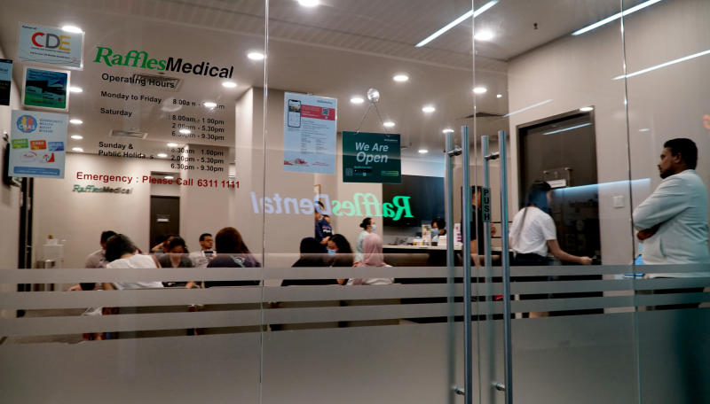 Ms Josephine Yong, 49, a promoter at Cuckoo, an air purifier shop located about 20m away from the Raffles Medical clinic, was wearing a surgical mask when she reported for work.