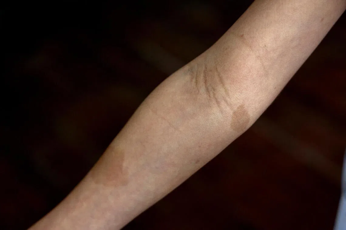 The “cafe au lait” spots on nine-year-old Phoebe Hu’s arm – a cause for her becoming a victim of bullying in school.