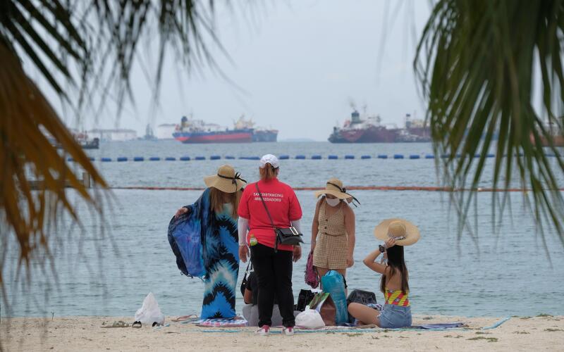 Groups of friends and families were spotted at Palawan, Siloso and Tanjong beaches, where some sun-tanned, played volleyball or held picnics. Others took to the water, swimming or kayaking close to the shore.
