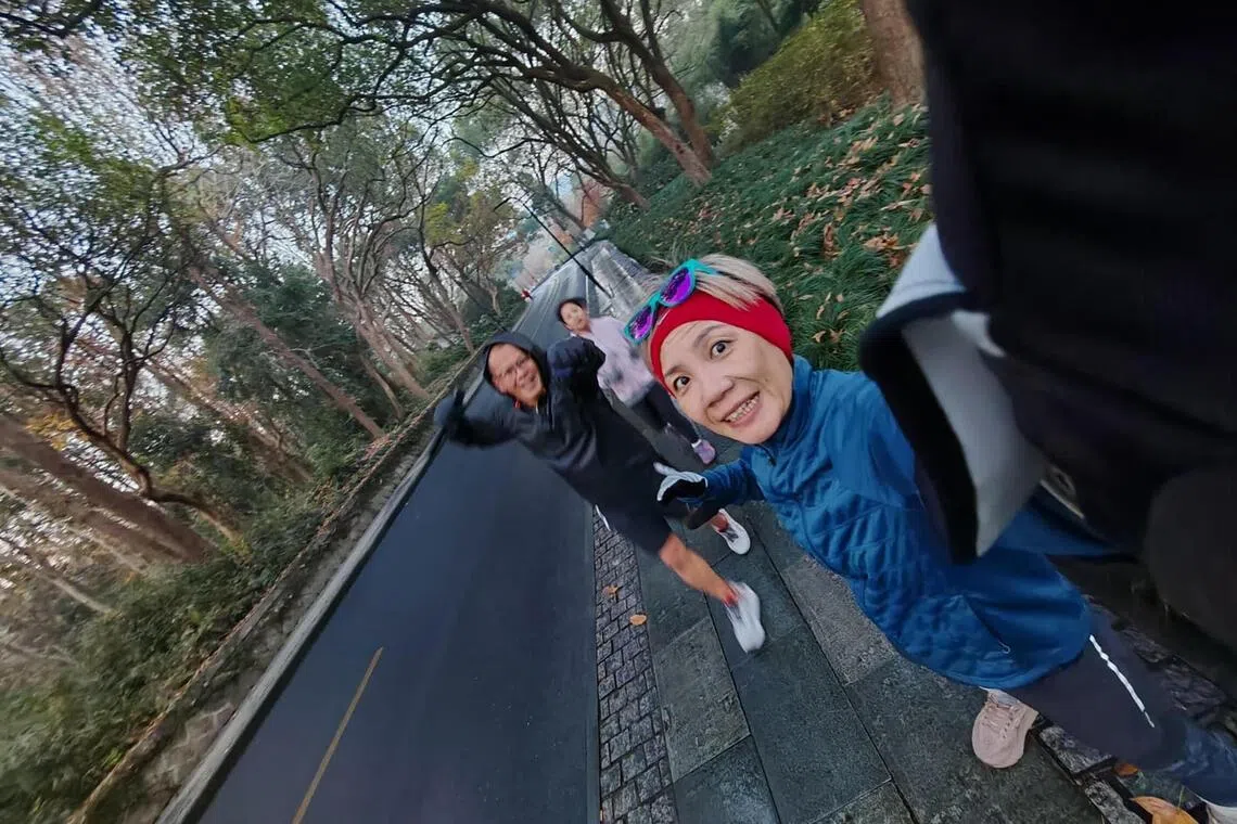 Ms Selina Ang often goes jogging. She is seen here out running with friends in December 2025 with Hangzhou, China.
