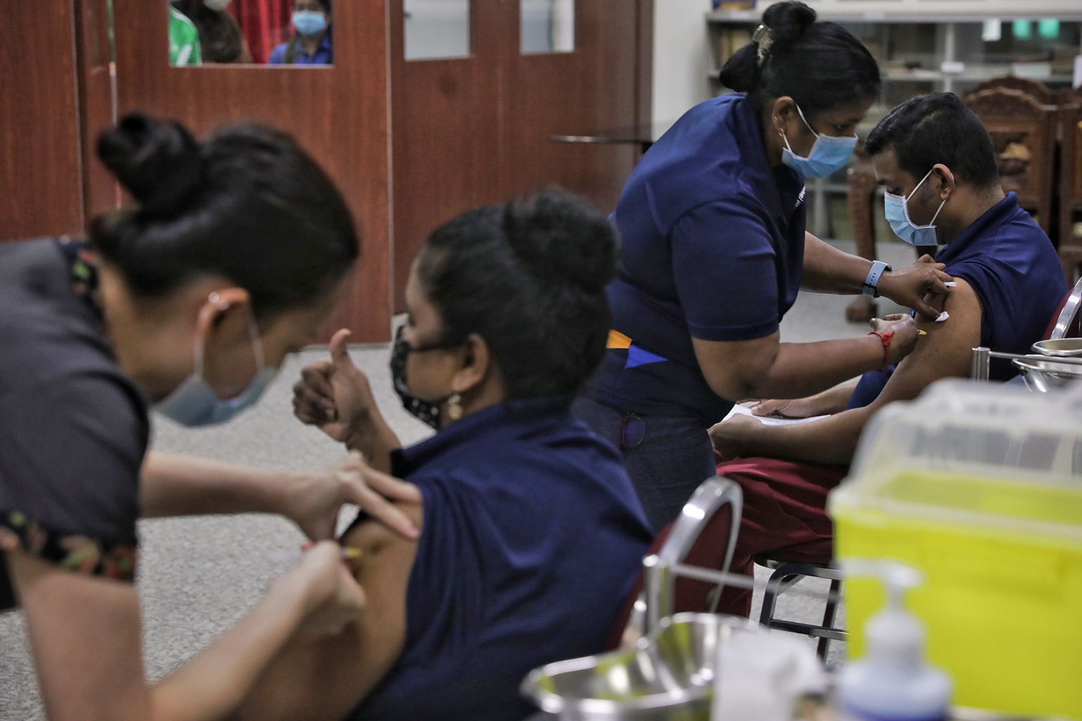 Staff of Sree Narayana Mission receiving their Pfizer-BioNTech Covid-19 vaccine jabs last Friday. The newly approved Moderna vaccine has an efficacy of 94 per cent – slightly lower than Pfizer’s 95 per cent. This data was gleaned from a phase three clinical trial of 30,000 people aged between 18 and 95.