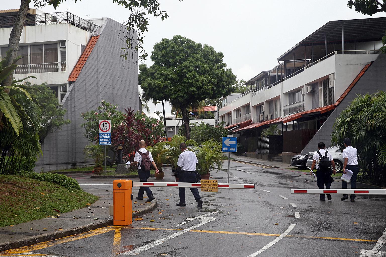 National Environment Agency officers carrying out inspections and issuing notices to residents at Watten Hill Condominium on May 14, 2016, following the first reported case of Zika virus from a resident at Watten Estate.