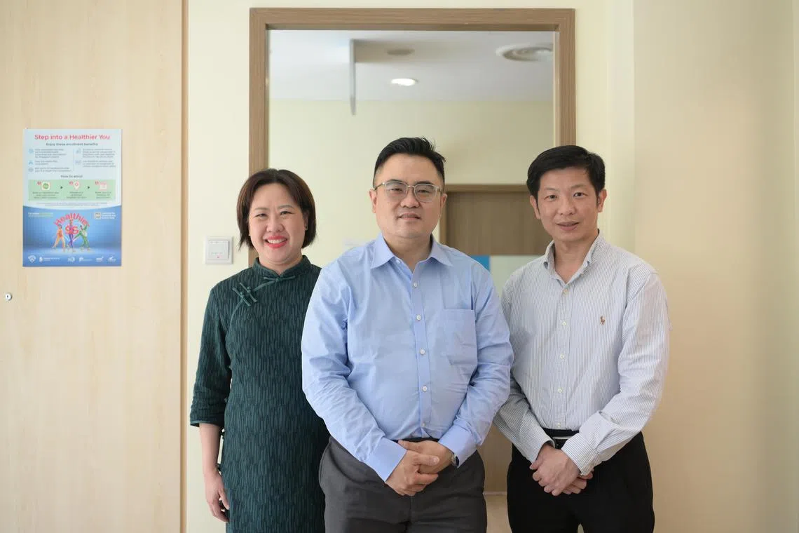 Dr Jonathan Yeo (centre) and IMH’s mental health-GP partnership programme head Goh Yen Li (left) and deputy Alvin Lum (right).