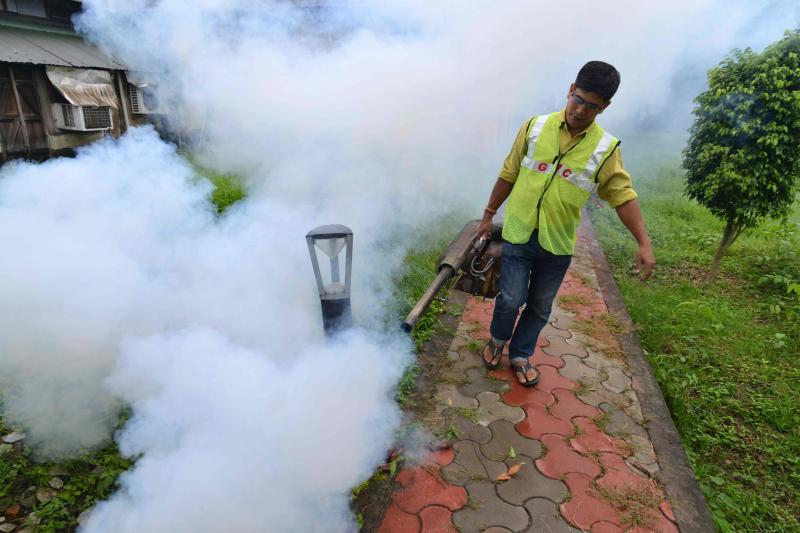 A worker fumigates to combat dengue and malaria, at a residential area in Guwahati, India, on Sept 24, 2019. Singapore itself was officially registered as malaria-free in 1982.