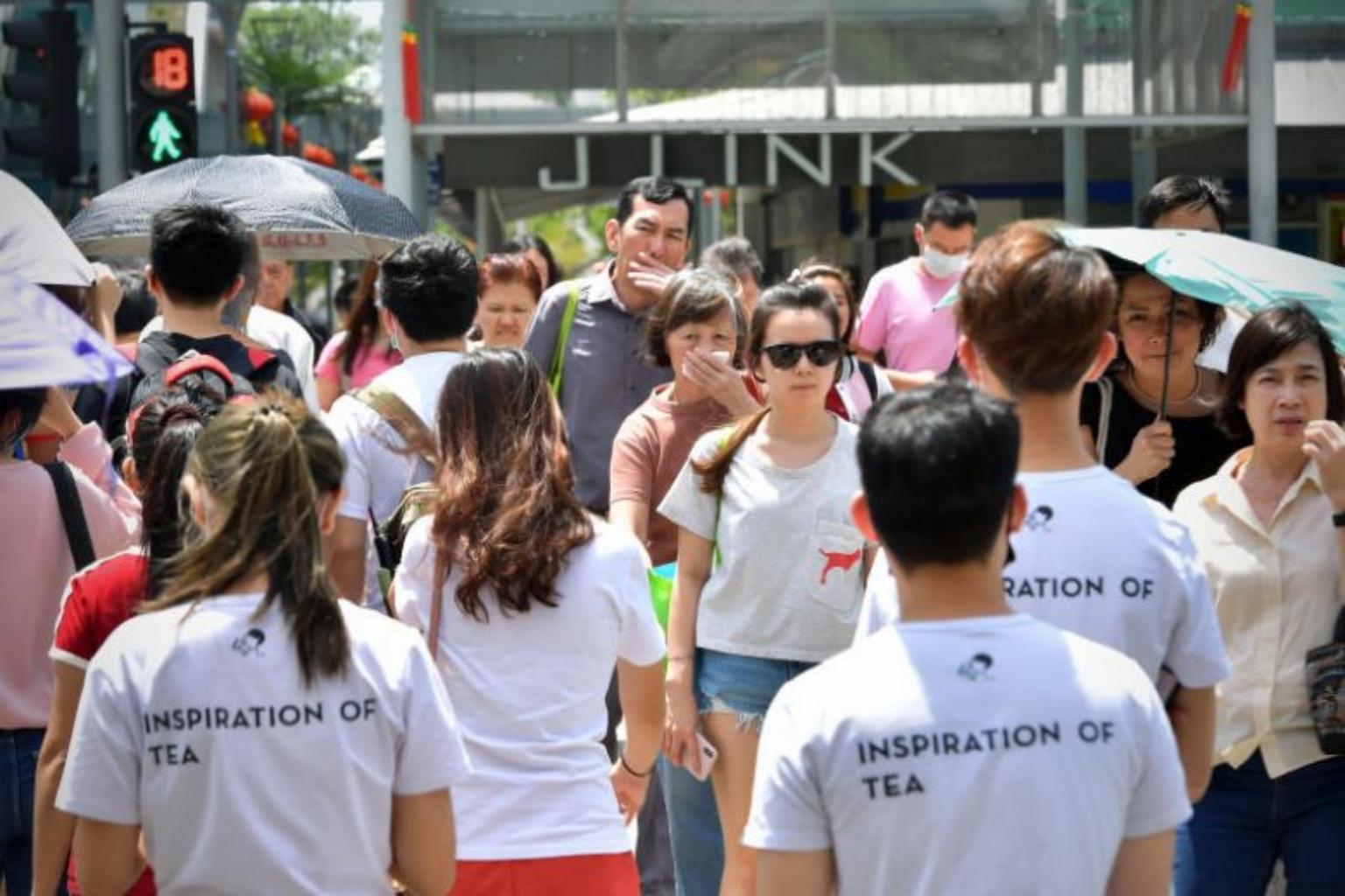 Pedestrians covering their noses and mouths amid a coronavirus outbreak in Singapore, on Feb 17, 2020.