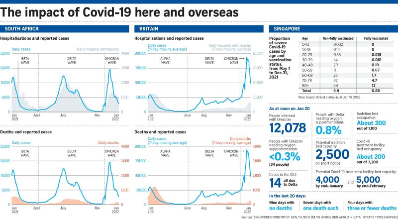 Health Minister Ong Ye Kung pointed to how South Africa, Britain and the United States took about four to six weeks for their Omicron cases to peak