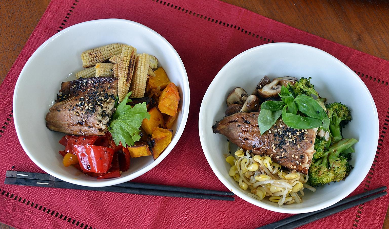 TERIYAKI RICE BOWL WITH GRILLED SABA AND VEGETABLES