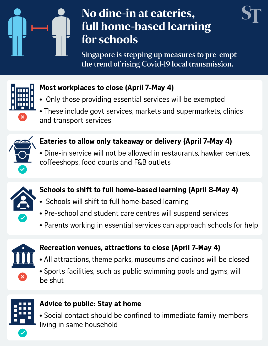 The measures are to reduce interactions outside of the household, MTI said.
