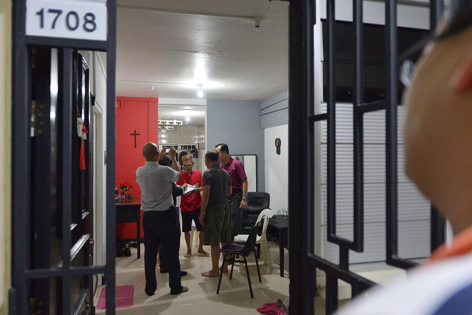 MOH officials and grassroots leaders visit a resident at Block 203 Ang Mo Kio Avenue 3, where six individuals across four unrelated units were detected to have Multi-Drug Resistant Tuberculosis.