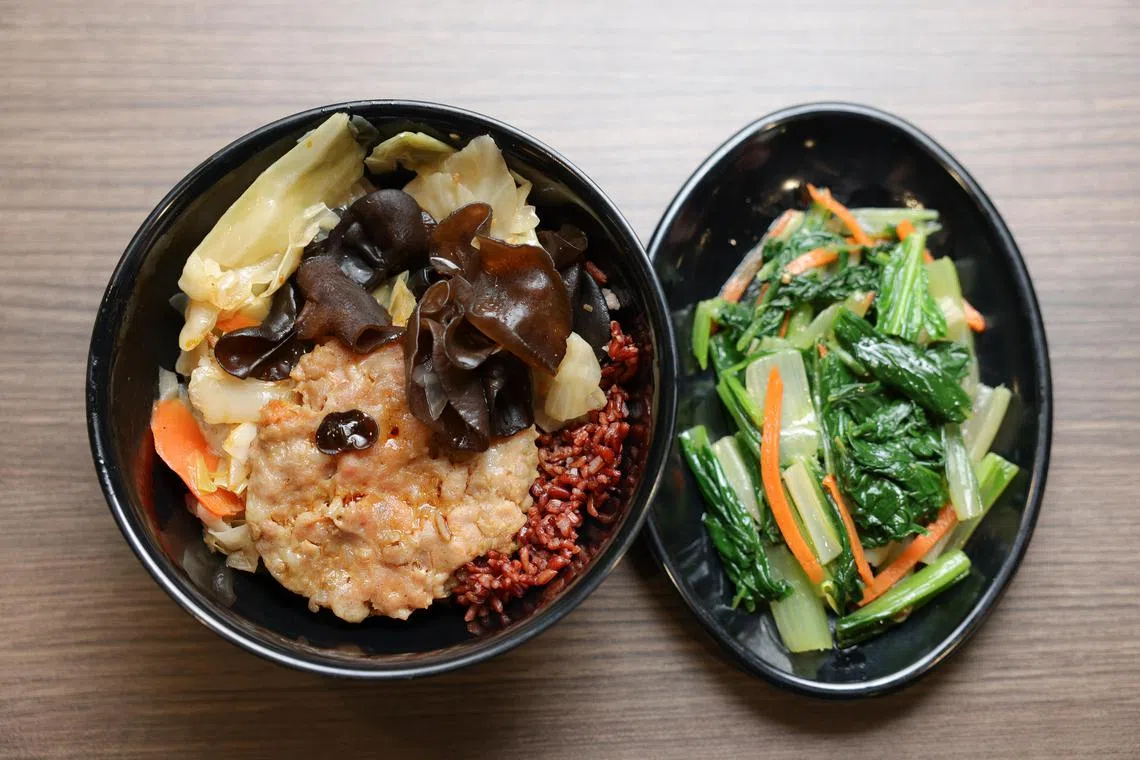 lyhawker ST20240126_202406127635 Ong Wee Jin / Lee Li Ying / Li Ying's meal at Senja Hawker Centre - brown rice with meat patty and vegetables. Feature story whether it is possible to eat a healthy diet in Singapore while only (or by majority) consuming hawker food. Two ST reporters will undergo a social experiment where they will only eat hawker food consecutively for 5 days and log all that they eat. Then, dieticians/nutritionists will review and rate their meal choices.
