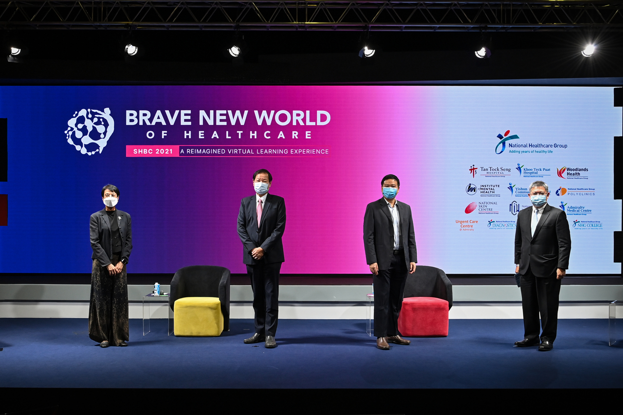 (From left) Ms Salma Khalik, Professor Philip Choo, Associate Professor Jeremy Lim and Associate Professor Kenneth Mak during the 19th Singapore Health and Biomedical Congress 2021 at Singapore Expo on Oct 7, 2021.