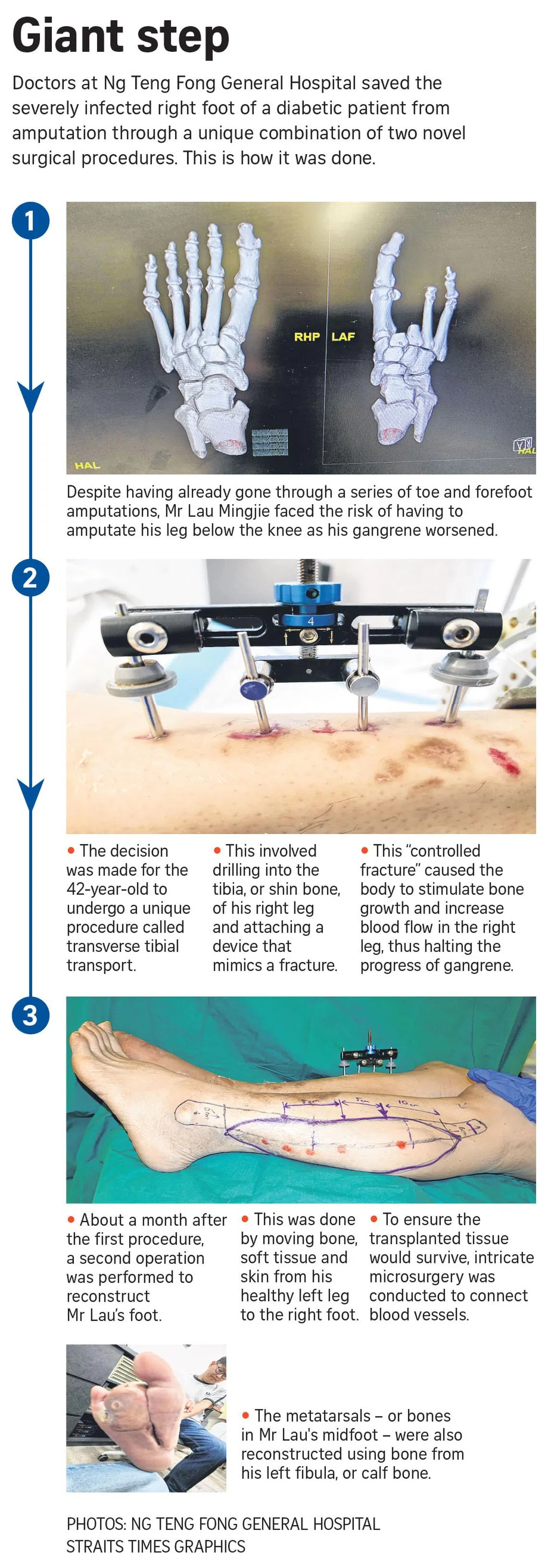 It was then that Adjunct Associate Professor Chen Yongsheng, an orthopaedic trauma surgery consultant at NTFGH, presented Mr Lau with an alternative treatment called transverse tibial transport (TTT).