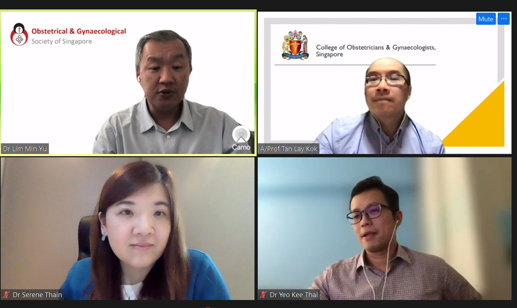 tgpregnant - (Clockwise from top left): Dr Lim Min Yu, president of the Obstetrical & Gynaecological Society of Singapore, Associate Professor Tan Lay Kok, President of the College of Obstetricians and Gynaecologists Singapore, Dr Yeo Kee Thai, Consultant at KKH's Department of Neonatology, and Dr Serene Thain, Consultant at KKH's Department of Maternal Fetal Medicine, speaking at the webinar on Nov 27.