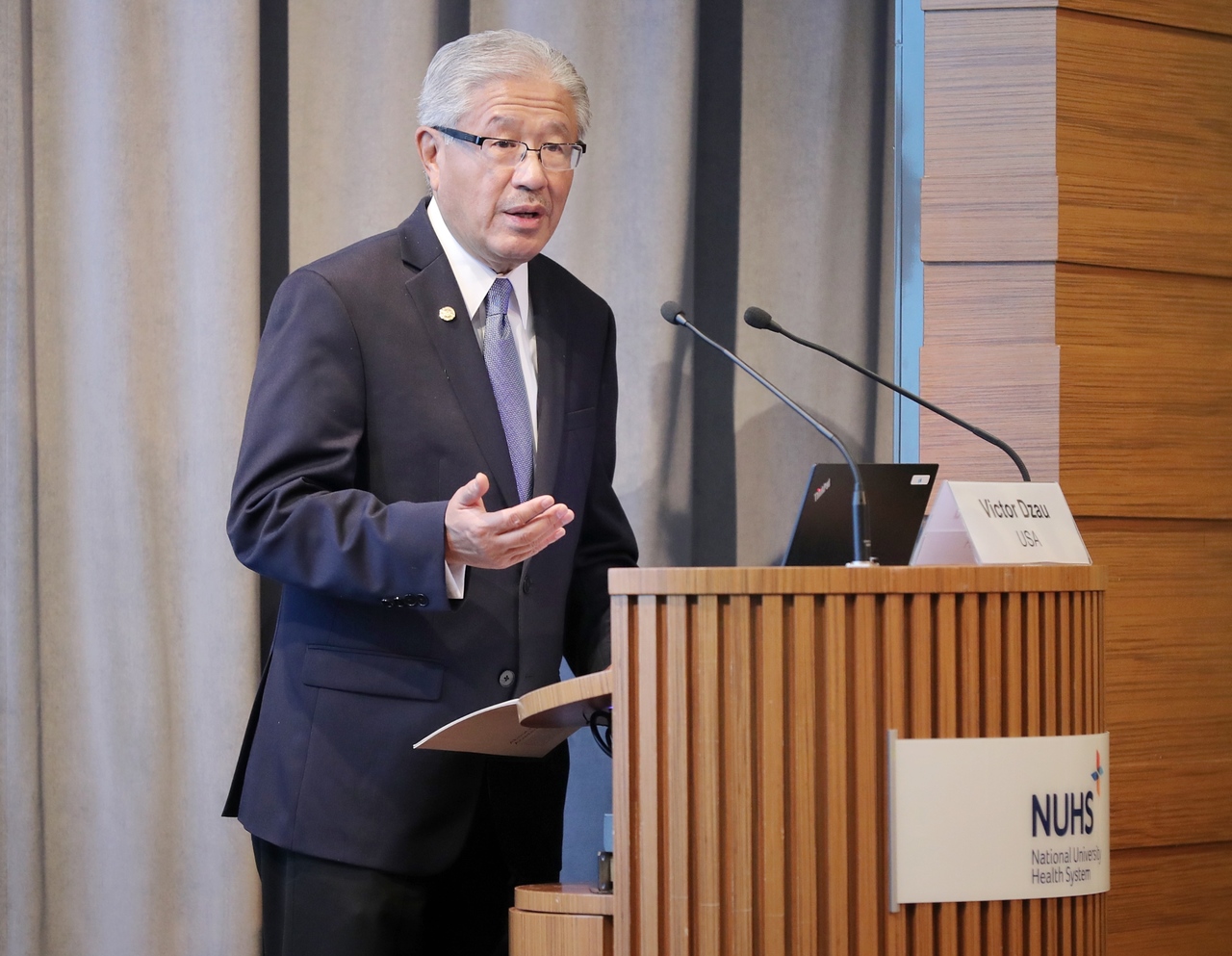 United States’ National Academy of Medicine President Victor Dzau speaking at National University Hospital on Feb 3, 2020.