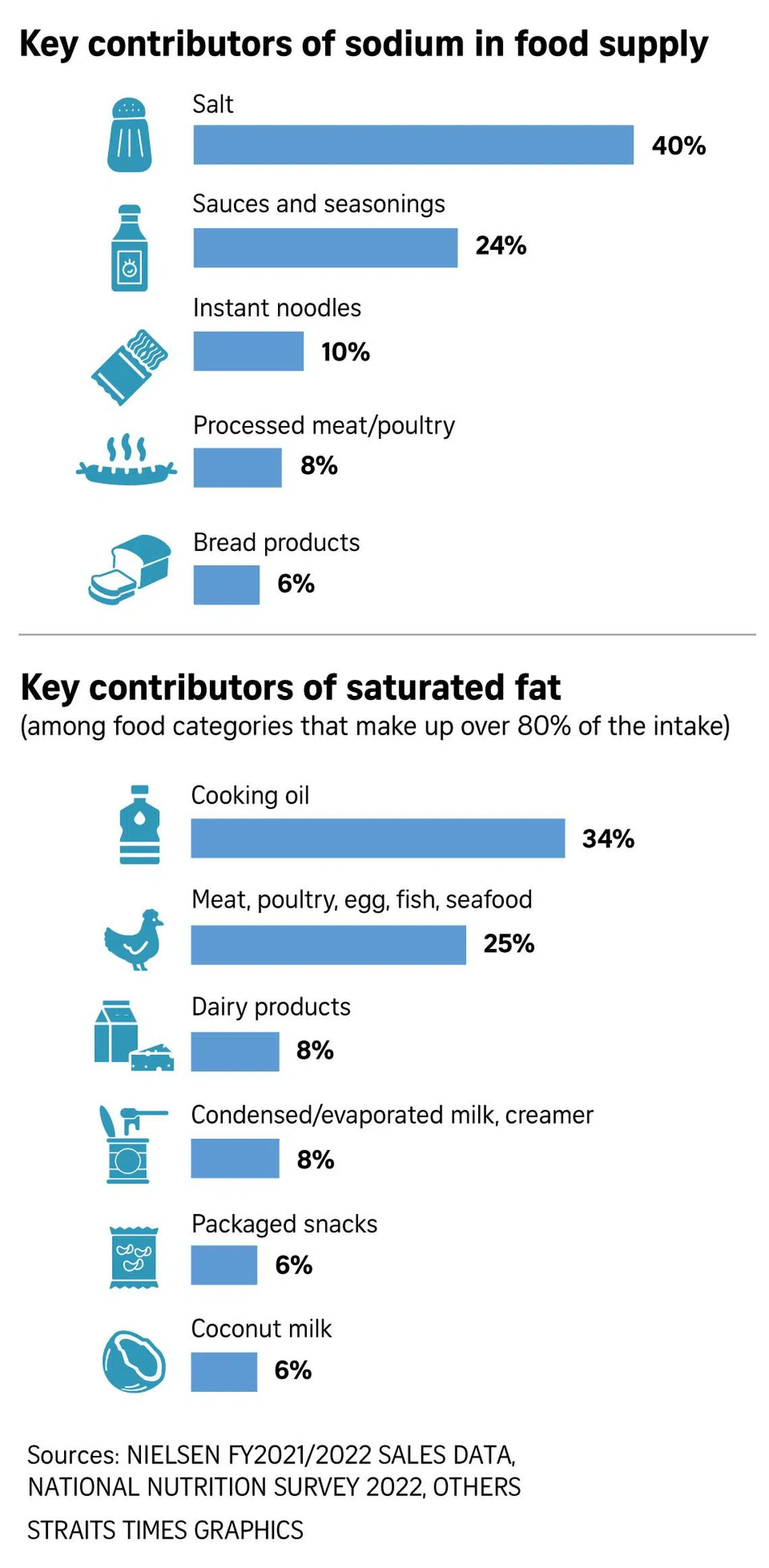 Both conditions are significant risk factors for heart disease and the two key nutrients that can lead to these diseases are sodium and saturated fat, and Singapore residents are overconsuming them, he said.