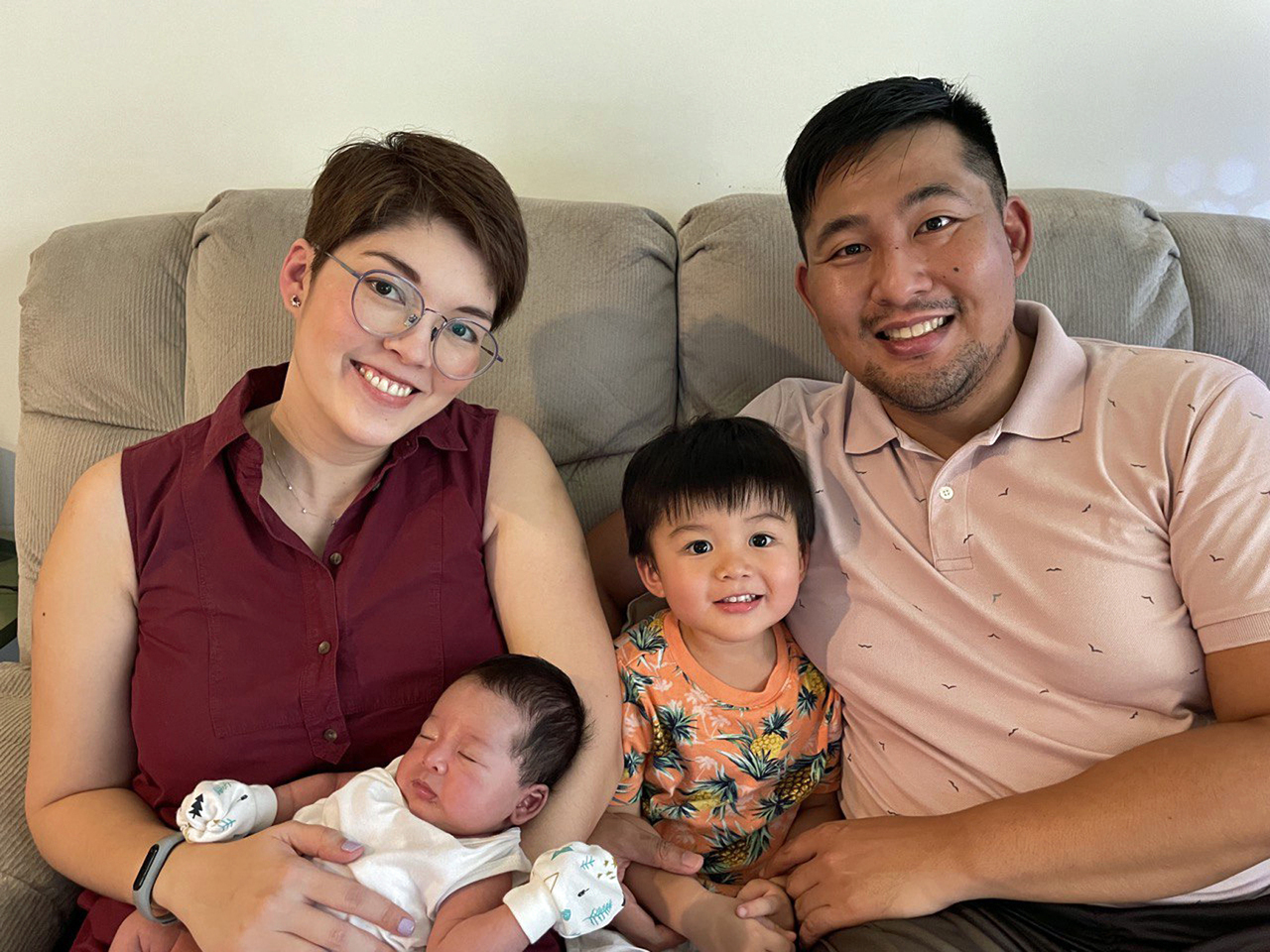 Ms Vanessa Rickard with her husband Carlos Cruz, their 2.5-year-old son, and their newborn son. She had caught Covid-19 in August.