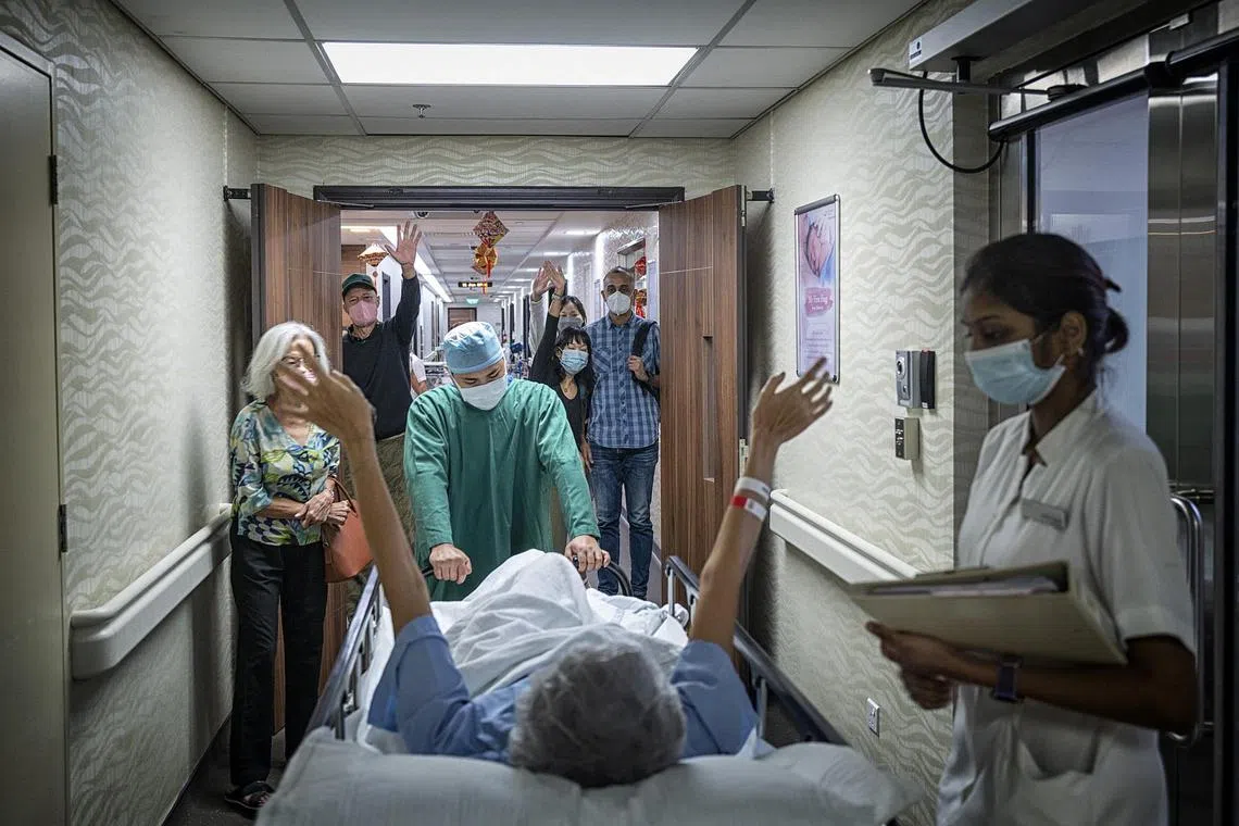 Ms Jill Alphonso being wheeled off into the operation theatre, with her close friends and family giving her their support.