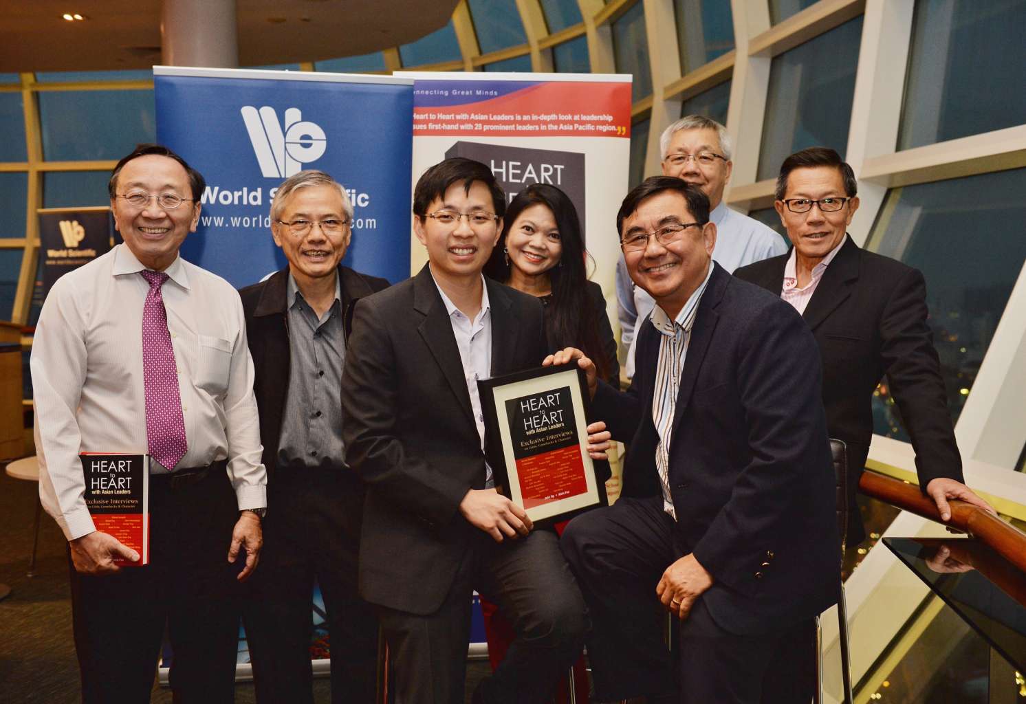 Book authors, Alvin Foo (third from left) and John Ng (3rd from right) and some of the book contributors (from left) Lim Hua Min, Associate Professor Ho Peng Kee, Jocelyn Chng, Edward Ong and James Chia at the book launch of Heart to Heart with Asian Leaders at The National Library on Aug 21, 2015.