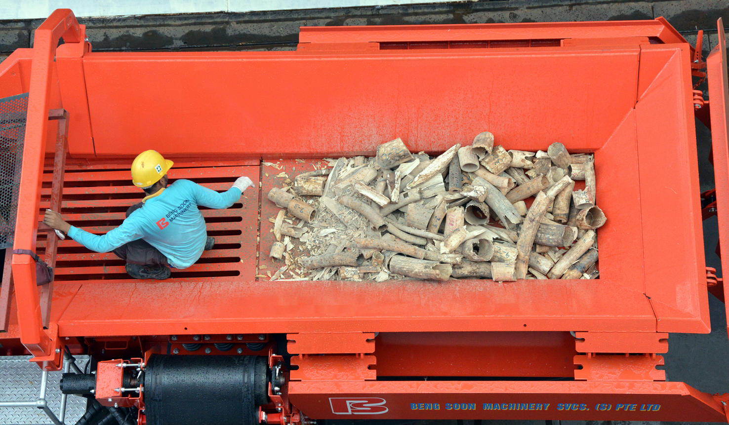 In one of the strongest signals of Singapore's "zero tolerance" for the illegal wildlife trade, the authorities on Monday destroyed 7.9 tonnes of ivory that more than 900 African elephants died for.