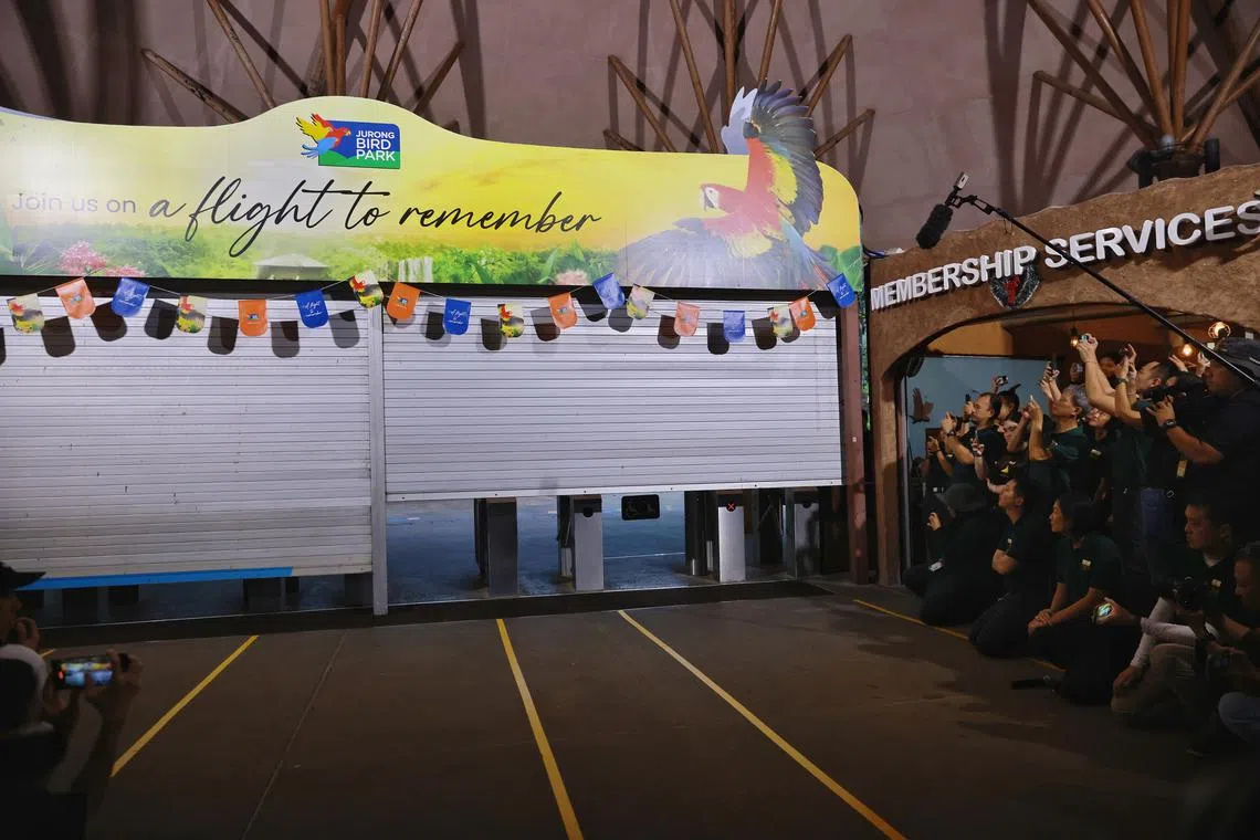 Jurong Bird Park’s shutters being lowered for the last time on Tuesday evening.