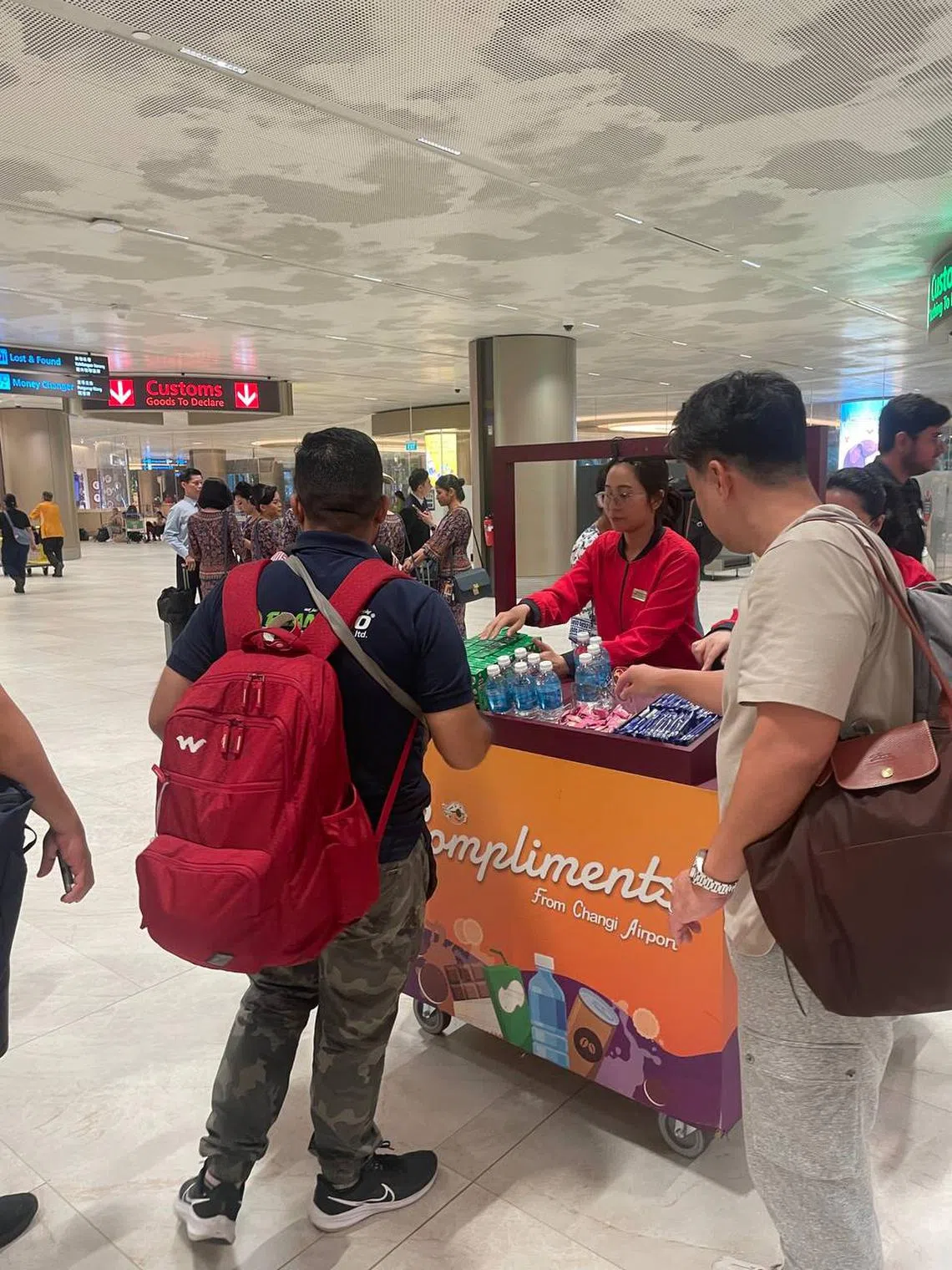 Changi Airport staff could be seen distributing snacks like Milo packets and Oreo biscuits to waiting passengers.