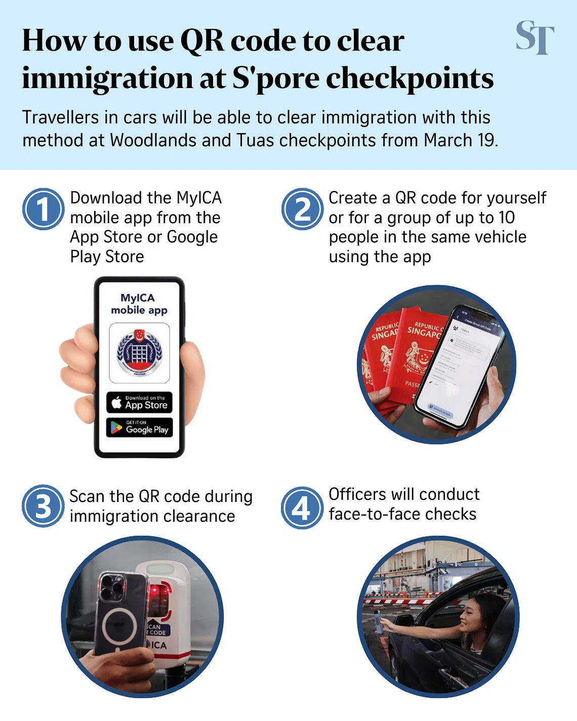 Before travelling to the checkpoints, motorists are also advised to check the traffic situation via the Land Transport Authority’s (LTA) One Motoring website or the Expressway Monitoring Advisory System installed along Bukit Timah Expressway and Ayer Rajah Expressway.