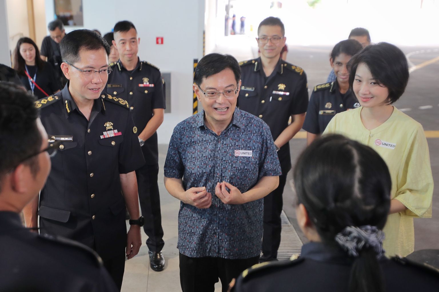 In a photo taken on Feb 16, 2020, Deputy Prime Minister Heng Swee Keat, Senior Parliamentary Secretary for Home Affairs Sun Xueling and SCDF Commissioner Eric Yap meet with frontline SCDF officers at Kallang Fire Station.