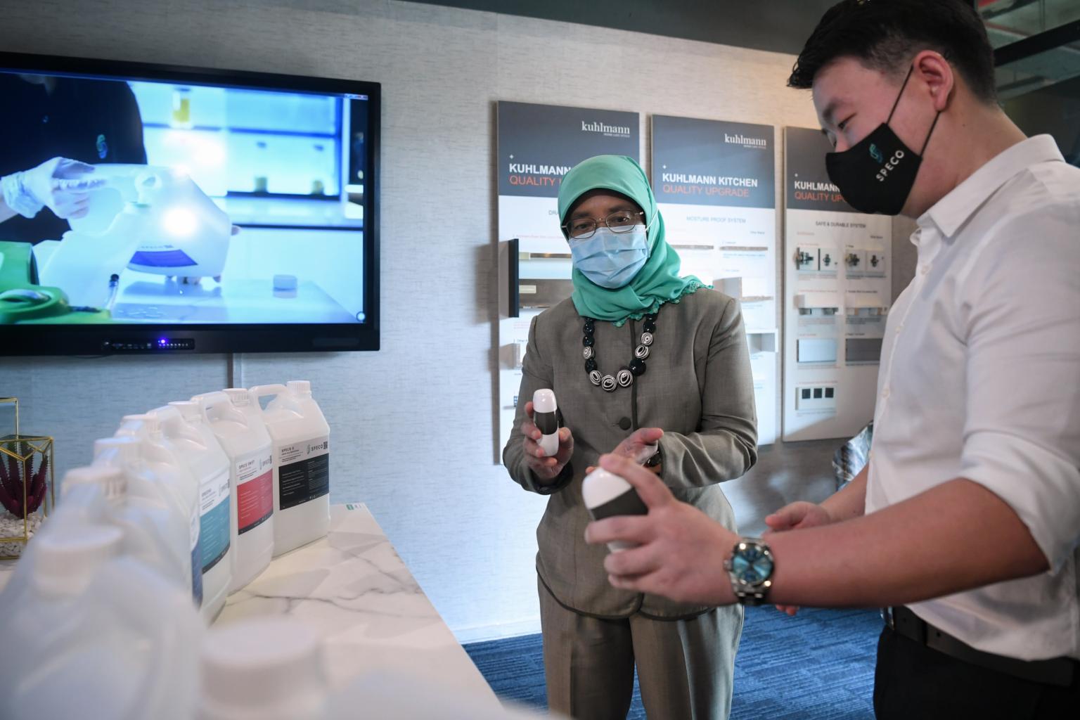 During her visit to the Speco Experience Centre showroom in Kallang Place, Madam Halimah watched demonstrations of the social enterprise's new products and spoke to its employees. In a Facebook post after the visit, Madam Halimah said she was "heartened that Spic & Span has taken on the mission of employing people from disadvantaged backgrounds, like ex-offenders and persons with mental and physical disabilities. This has given them an opportunity to earn a decent income and live meaningful lives".