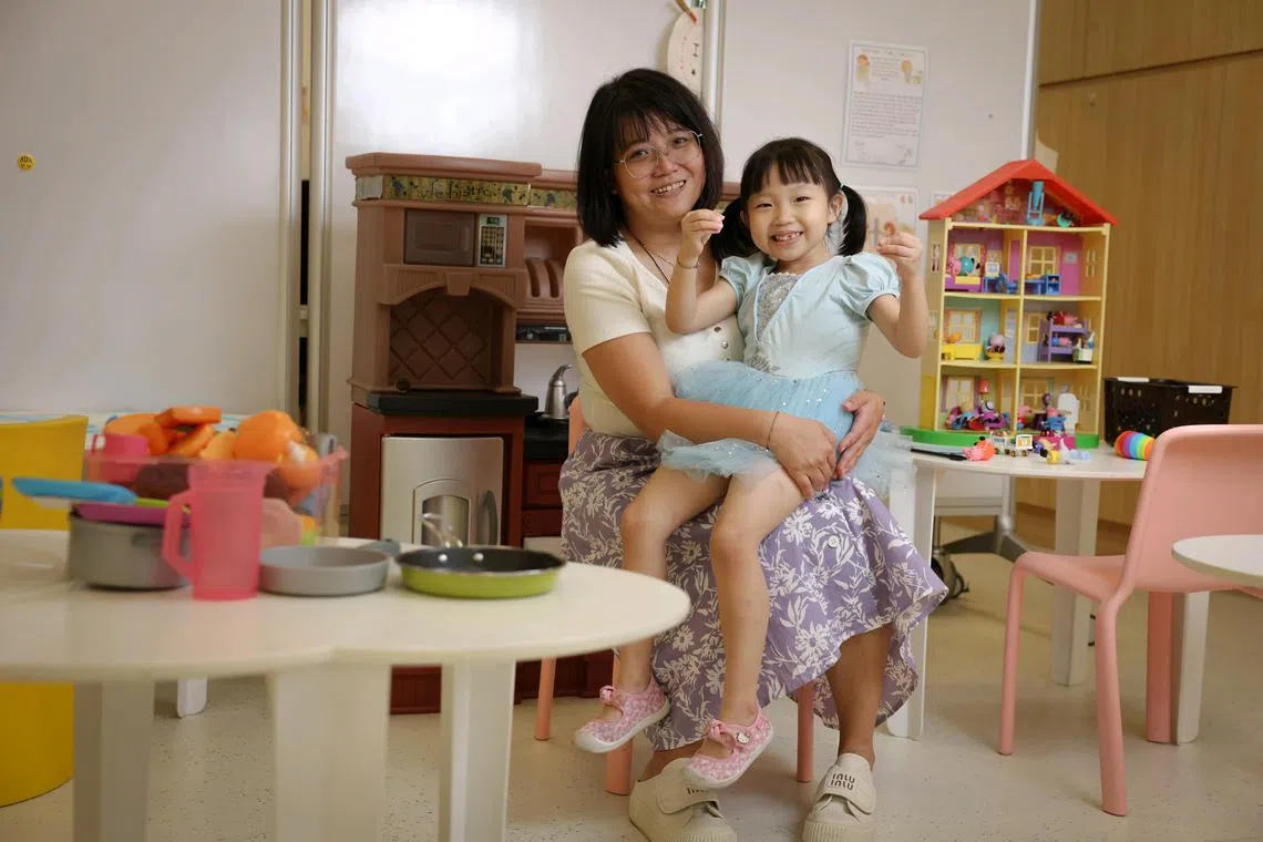 Madam Felicia Tan with her five-year-old daughter Elvia Lim. The girl now has a voracious appetite, earning her the nickname “little hungry monster”.