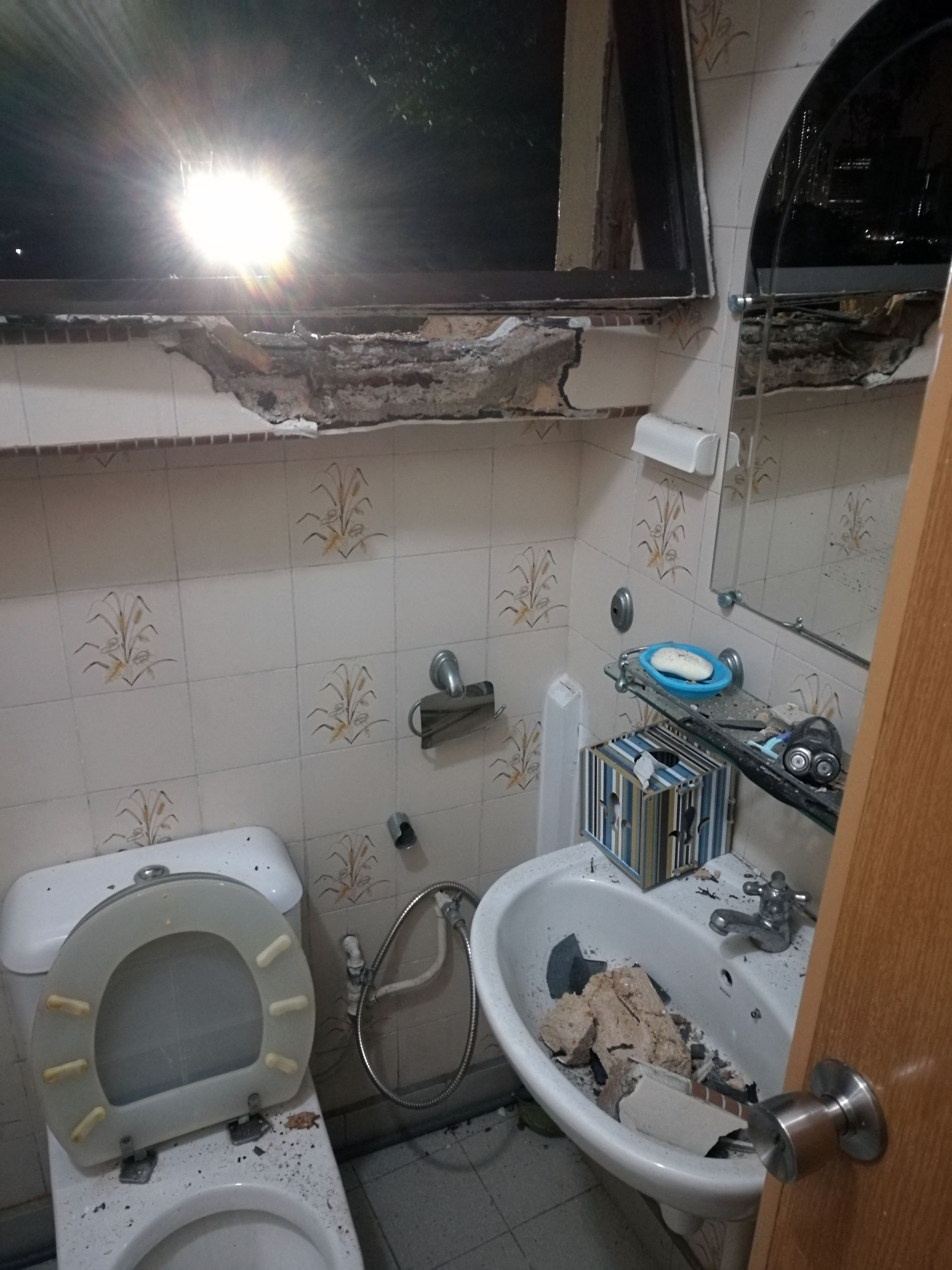 Photos from residents showed shattered windows, twisted window grilles and broken bathroom fittings.