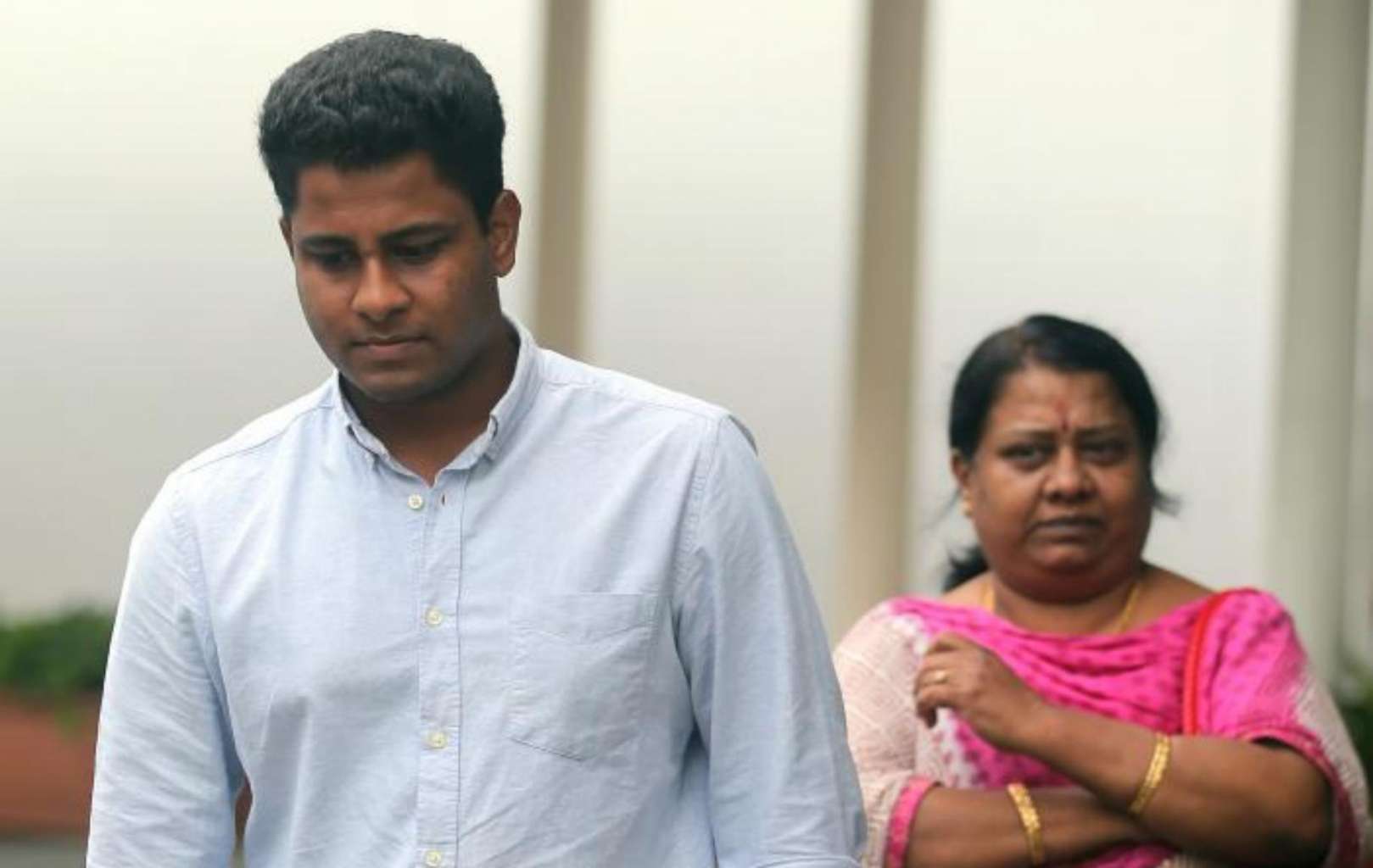 Vandana Kumar Chidambaram leaving the State Courts with his mother in October 2016. He was charged with evading NS for five years.