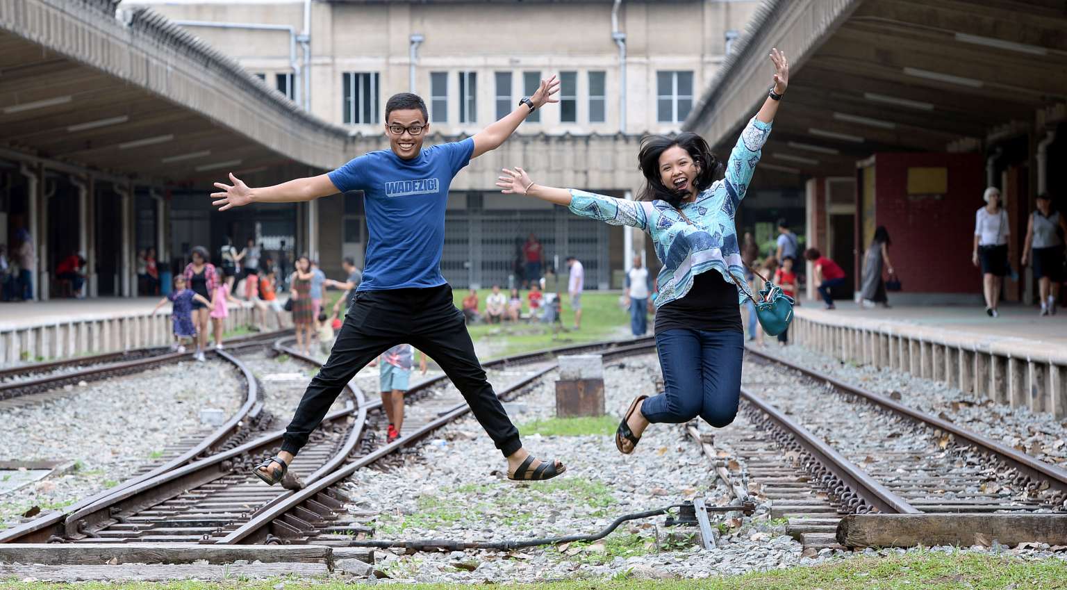 Visitors doing a jump shot at the former Tanjong Pagar Railway on Feb 9, 2016.