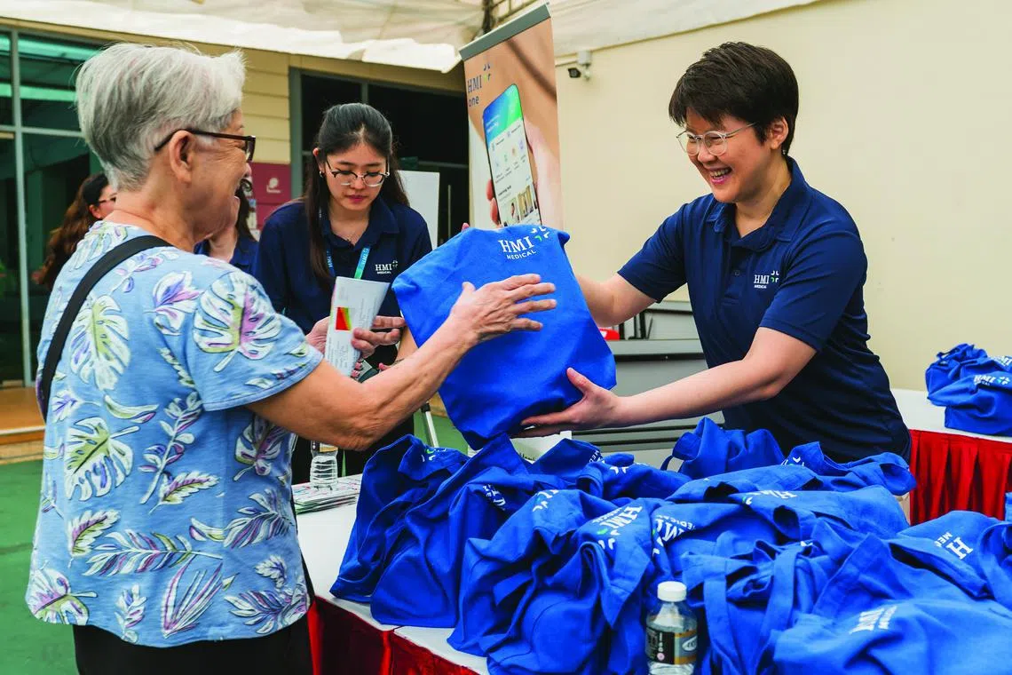 HMI Group CEO Chin Wei Jia hands out goodie bags to residents at a recent HMI Cares Better Health Better Life community health outreach event.