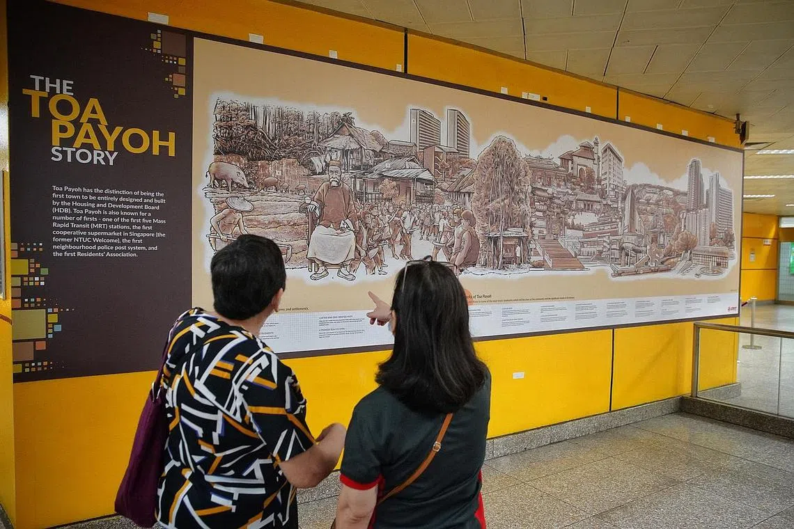 SMRT chairman Seah Moon Ming said that in an effort to transform MRT stations into inclusive community spaces, the comic-style murals offer glimpses into the community history surrounding them.