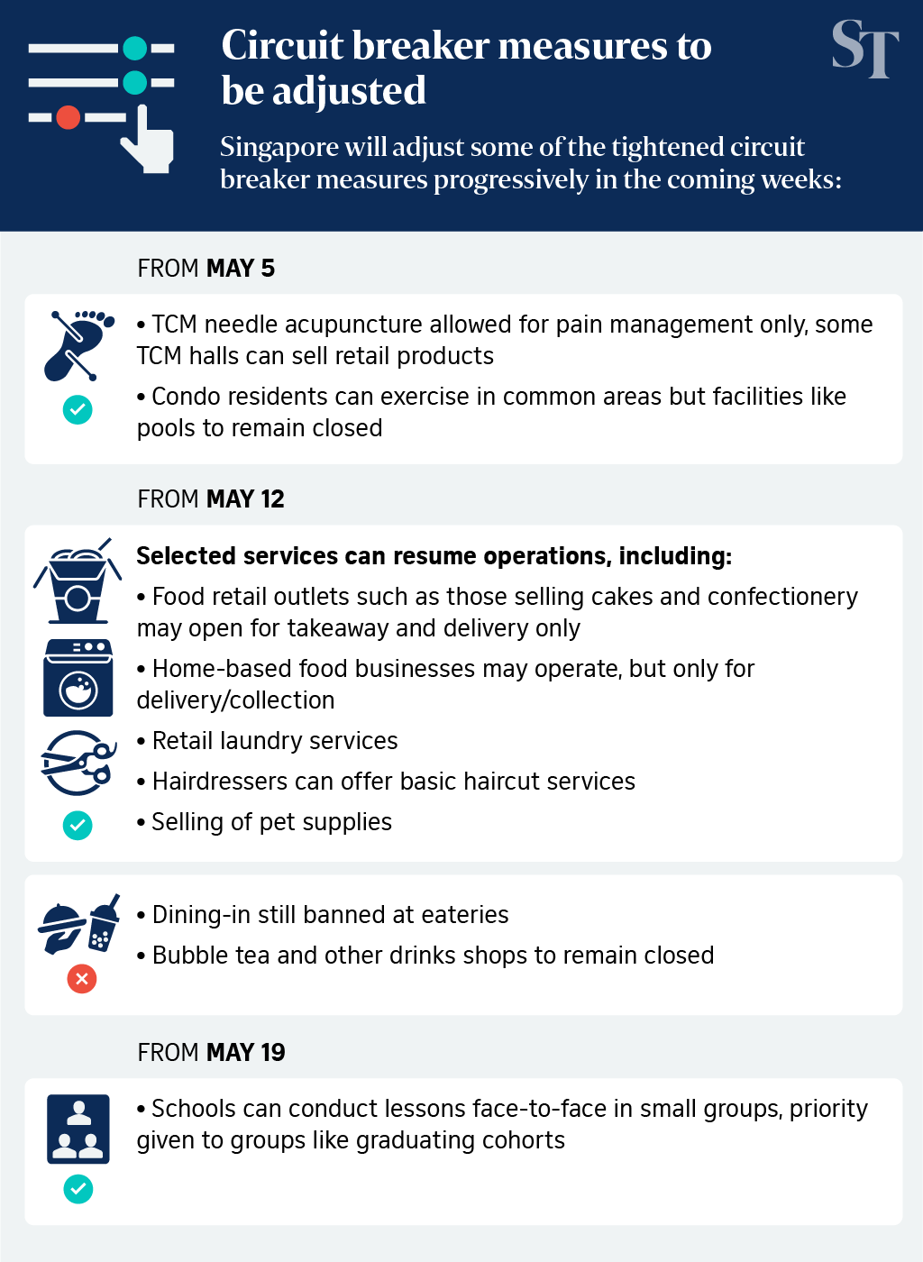 Meanwhile, home-based private dining will not be allowed.