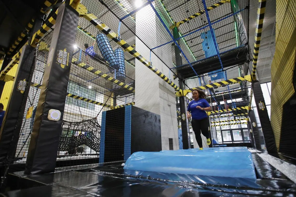 Augmented reality bouldering walls and trampolines, a net maze and a multi-level obstacle course are among the features at the new HomeTeamNS Bedok Reservoir clubhouse.