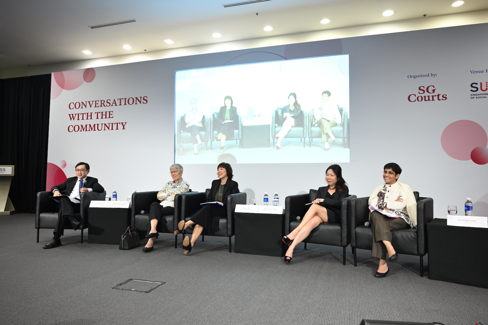 She was joined by a panel of family law experts, including Ms Wong Kai Yun, co-chair of the Law Society’s Family Law Practice Committee; Dr Sudha Nair, executive director of family violence specialist centre Pave; and law professor Leong Wai Kum from the Singapore University of Social Sciences (SUSS).