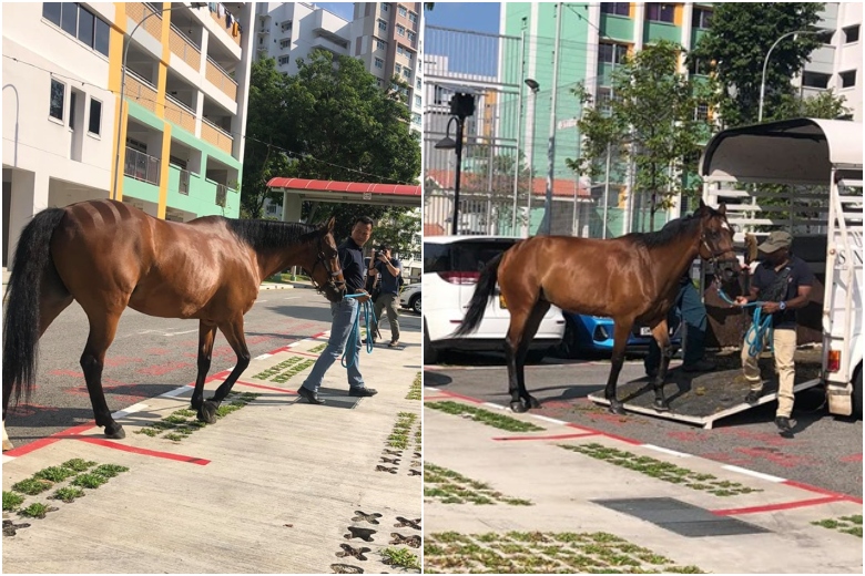 SINGAPORE - Two horses that were spotted in Yishun on Wednesday morning (Oct 16) jockeyed for attention among netizens, who were shocked to see the animal in a housing estate.