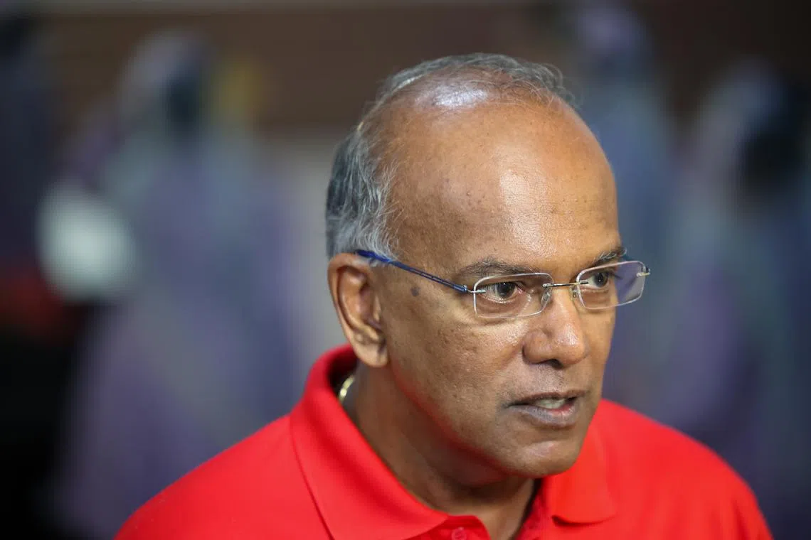 Minister for Home Affairs and Law K. Shanmugam speaking to the media on the sidelines of a community event in Chong Pang on Aug 17.